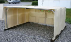 Turn EZ Mini-Barn over to upright position. Then slide a 4" x 4" x 8' (or larger) runner under each side wall. Secure each runner with four (4) 5/16" x 2 1/2" lag screws and four (4) 5/16" washers. Pressure treated wood is recommended. See Figure D.